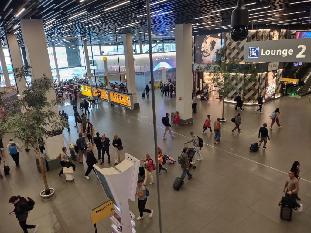 Anthonie brengt Ingrid en mij naar Schiphol toe. Daar ik het vrij druk en even later moeten we snel afscheid nemen. Alleen uitstappen en afscheid nemen is toegestaan. Binnen sluiten we aan bij de bagage dropoff. Mijn koffer wordt niet automatisch herkent, ik moet daarom ouderwets bij een mevrouw gaan inleveren. Ingrid volgt mijn voorbeeld.